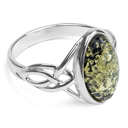 Noda Anello in Argento Sterling e Ambra Verde Celtico