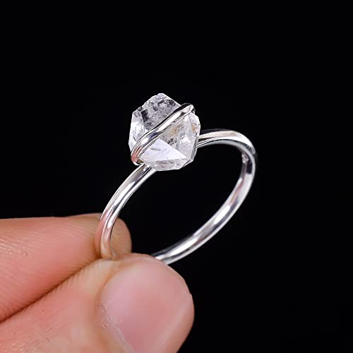 Anello in argento Sterling 925, con diamante naturale grezzo Herkimer realizzato a mano da donna, RSR3000 e Argento, 57 (18.1), cod. RSR3000d