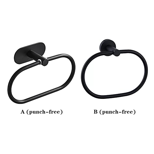 Anello per asciugamano da bagno in acciaio inossidabile, autoadesivo da appendere al muro, ovale nero, accessori da bagno, anello ovale nero con finitura opaca, porta asciugamani da cucina (taglia: B)