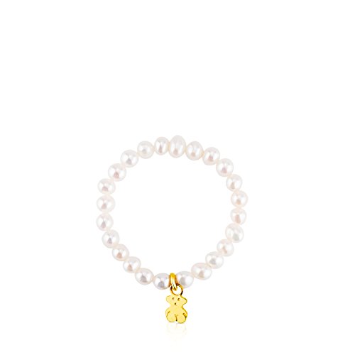 Anello elastico TOUS Pearls in oro giallo con perle e orsetto