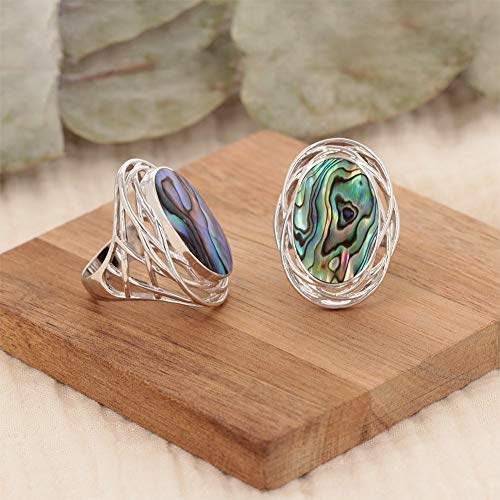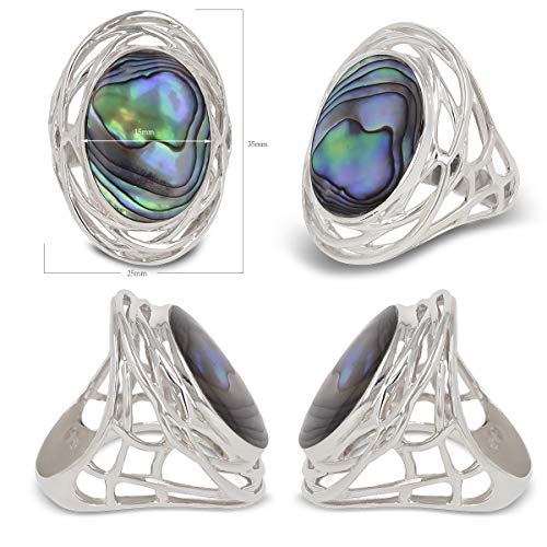Aden - Anello cabochon di madreperla Abalone su nido d'argento 925 e Argento Sterling, 14, colore: multicolore, cod. K41012-54
