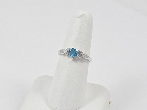 Anello da 9 carati in oro bianco con topazio blu e diamanti a forma di cuore, anello di fidanzamento, regalo per Natale, San Valentino, festa della mamma. Taglie anello: 8, 9, 10, 12, 13, 15, 17, 18, 19, 21, 22, 23, 25 e Oro bianco, 54 (17.2), cod. R12428SBTWD