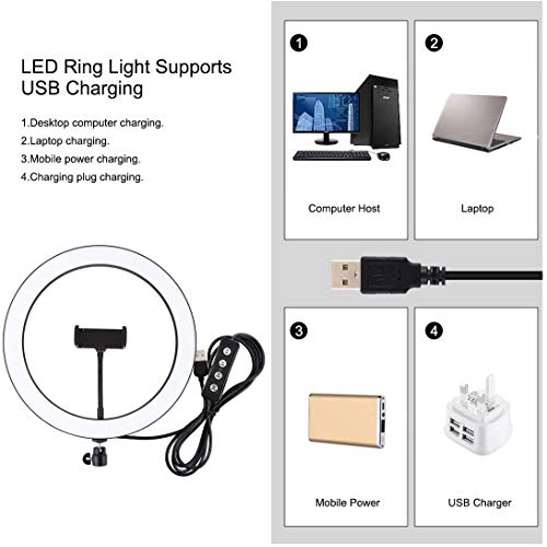 【Alimentazione USB】 La porta USB può funzionare con molti dispositivi come power bank, PC, computer portatile, caricatore da parete USB e presa multipla con porte USB, ecc. Ottieni i vantaggi di una struttura semplice, facile da usare, basso consumo di energia, sicurezza e affidabilitàLED Ring Light with Stand, Desktop Ring Light Dimmable with Tripod Stand and Cellphone Holder USB Power Contol Button for Live Stream Video Blog Photography Makeup