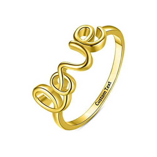 Anello con il cuore per le donne anelli di promessa d'amore Anello da donna per incidere il nome personalizzato in argento sterling Ragazze adolescenti per i suoi migliori amici in modo (Silver-5)
