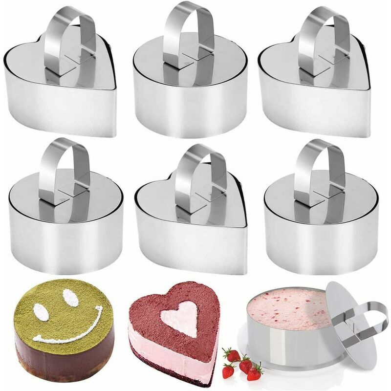 Descrizione del prodotto: Materiale: acciaio inossidabile Argento Dimensioni: A forma di cuore: 8,2 x 7,6 x 4 cm / 3,2 x 3 x 1,6 pollici Rotondo: 8 x 8 x 4 cm / 3,1 x 3,1 x 1,6 pollici La confezione include: 3 anelli da forno a forma di cuore 3 anelli da forno rotondi Descrizione: > 1. Resistente al calore, che consente di condensare facilmente il cibo. La dimensione è 8 * 8 * 4 cm 2. Gli anelli da dessert sono realizzati in acciaio inossidabile per uso alimentare che ha un effetto salutare sul tuo corpo 3. DIMENSIONE PERFETTA - La dimensione di ogni anello da dessert è di 10 x 4,5 cm.Per un hamburger perfetto, ad esempio, è una dimensione grande 4. FACILE DA PULIRE - Gli anelli da dessert in acciaio inossidabile sono sicuri da usare. Adatto per alimenti e lavastoviglie, molto adatto a tutti gli utenti compresi adulti e persino bambini 5. AMPIA GAMMA DI APPLICAZIONI - L'anello ha;