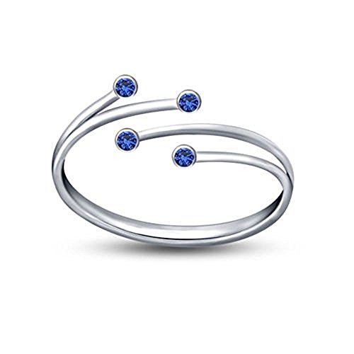 Anello da donna in argento Sterling 925 placcato oro bianco regolabile Bypass misura in diamante CZ blu