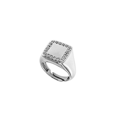 Anello Donna Chevalier con Zirconi in Argento 925 Quadrato Anelli da mignolo Regolabile (Quadrato Zirconi Bianchi - Rodio)