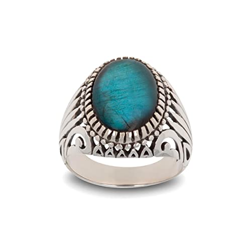 Anello da donna con pietra di labradorite ovale blu argento massiccio effetto invecchiato e Argento Sterling, 14, colore: blu, cod. Woman-506-Labra-54