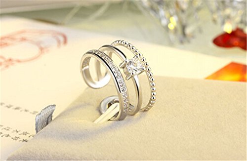 Anello da donna regolabile in argento 925 + zircone, semplice triplo strato di anello di chiusura