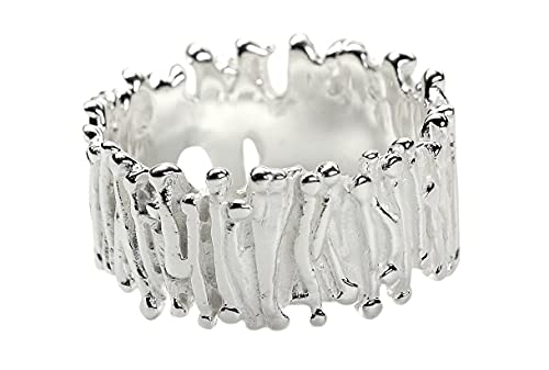 Anello da donna SILBERMOOS asticella radici righe stravagante argento Sterling 925 lucido opaco, Size:O