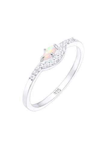 Elli Anello da donna vintage elegante con zirconi marchese opale in argento sterling 925, Cristallo, Opale