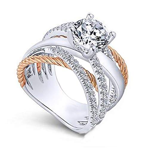 Anello per donne, TYXL Strass Intarsiato Croce Design Anello, Moda Donna Croce Doppio Colore Strass Anello Fidanzamento Gioielli Da Sposa Regalo Argento + Oro 5