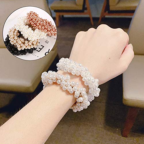 Anello Elastico Capelli Pearl Elastica Corda Capelli Perline Supporto Coda Cavallo Scrunchie Corda Ragazze Scrunchies Pearl Donna Elegante Pearl Capelli Beads 6 Colore per Donne e Ragazze 6 pezzi