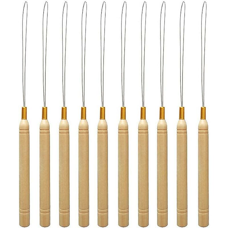 Materiale: anello per estensioni dei capelli in legno Speciale design del manico in legno, comodo da usare e antiscivolo. Gli aghi in lega non arrugginiscono, uso prolungato, flessibili e facili da usare. Design pratico: il kit di aghi per l'estensione dei capelli è leggero con manico in legno facile da impugnare, ottimo per l'estensione dei capelli, il kit è uno strumento straordinario che è davvero facile da usare Come usare: ago per l'estensione dei capelli in legno Basta precaricare l'infila in metallo e tirare i capelli del cliente attraverso l'anello con le dita. Fai scorrere l'infilatore verso il basso e lascia il micro-anello sui capelli della cliente pronto per inserire l'estensione dei capelli con la punta. Uso principale: l'ago a uncino è ottimo per tirare i capelli naturali attraverso gli anelli di micro collegamento, adatto anche per capelli sintetici o veri, può essere applicato per l'estensione dei capelli pre-incollaggio La confezione include: 10 pezzi di aghi per
