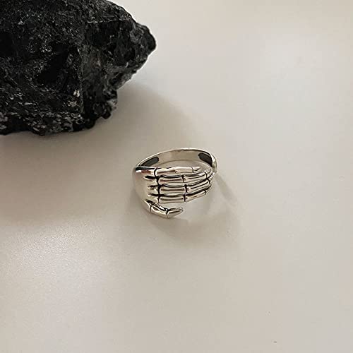 Anello a Fascia Aperta In Argento Sterling Con Teschio Vintage Per Donne Ragazze Uomini Regolabile Ossidato Scheletro Gotico Artigli Del Diavolo Piccola Coda Da Dito Anelli Unisex Gioielli Compleanno