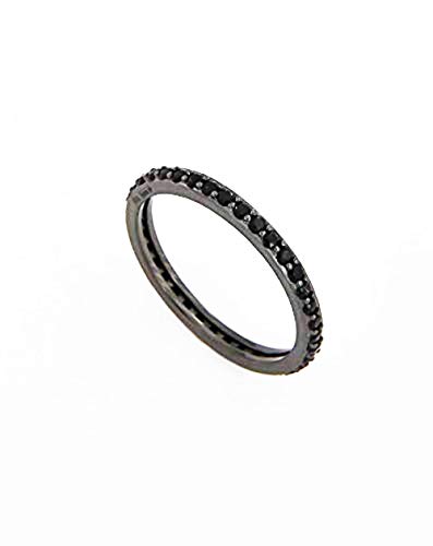 AN Anello fedina eternity in argento 925 brunito con zirconi neri (argento 925 brunito, 8)