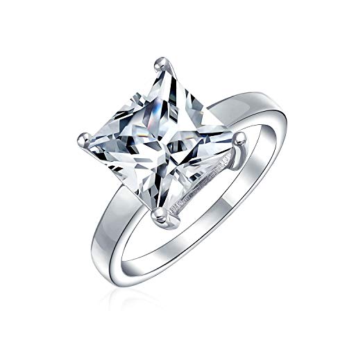 Anello Di Fidanzamento Classico Personalizzato Senza Tempo 3Ct Aaa CZ Square Brilliant Princess Cut Solitaire Per Donne .925 Sterling Silver Plain Band Personalizzabile