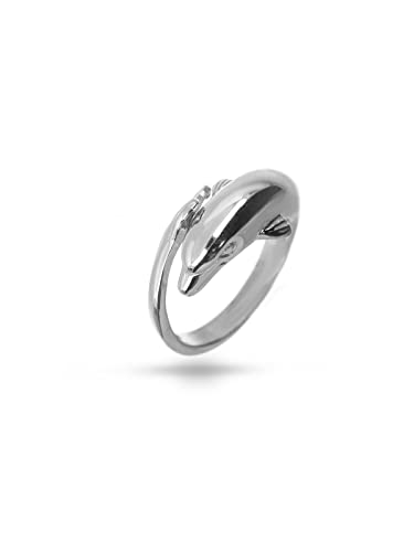 Anello a forma di Delfino in Argento 925% Regolabile - Anello originale per Donna e Ragazza Moderno e alla Moda - Made in Italy