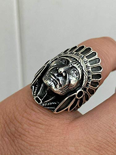 【DESIGN ALLA MODA】 I nostri anelli da capo guerriero nativo americano sono realizzati da abili artigiani, squisiti, fantastici, alla moda e alla moda. Il motivo del capo indiano scolpito tridimensionale e la lega d'argento vintage e antica lo rendono pieno di vicissitudini. Questo è il simbolo di ogni uomo che ha sperimentato tutti i tipi di vita.