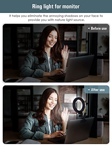 【Soft Light & Wide Uso】Questa lampada per foto led è stabile, senza abbagliamento e lampeggiante, può aiutarti meglio a illuminare la pelle ed eliminare le fastidiose ombre. La lampada ad anello per laptop è adatta per videoconferenza, apprendimento remoto, zoom call, selfie, trucco, trasmissione in diretta, visualizzazione del prodotto online, YouTube, Tiktok.