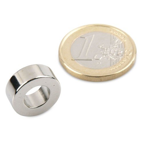 10 x Anello magnetico Ø 15/8 mm, altezza 6 mm Neodimio N42, nichelato - Forza di attrazione 5 kg - 10 pezzi - Anelli magnetici Magneti permanenti in Terre Rare - Calamite ad anello al Neodimio