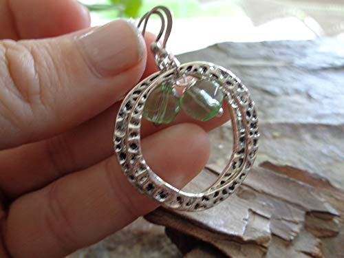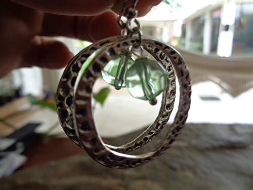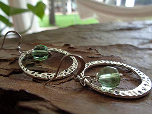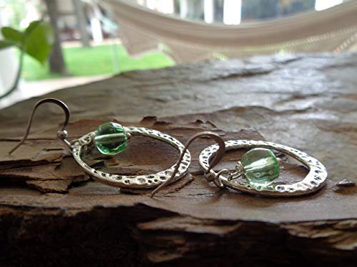 ANELLO MARTELLATO CHIARO E SFERA IN VETRO ✿ Orecchini Boho in verde trasparente