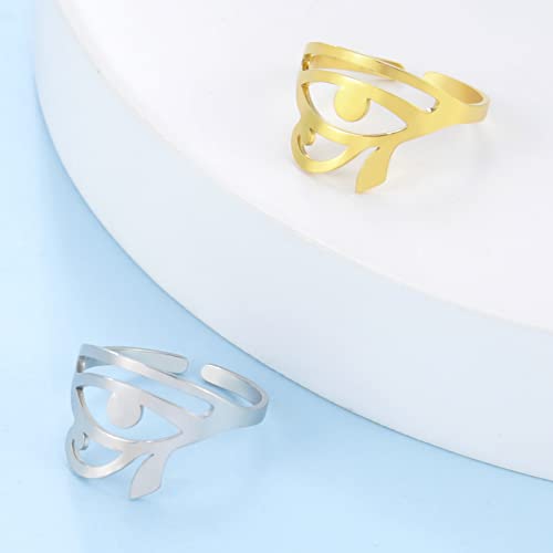 Anello Occhio di Horus Anello Regolabile Egiziano Antico Egitto Horus Occhi di Ra Anello Aperto Amuleto Fortunato Protezione Gioielli in Acciaio Inossidabile per Uomo Donna (Argento)