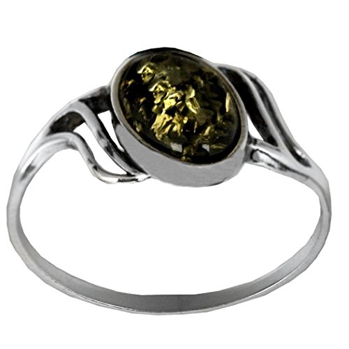 Anello ovale in argento sterling con ambra verde