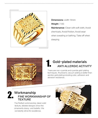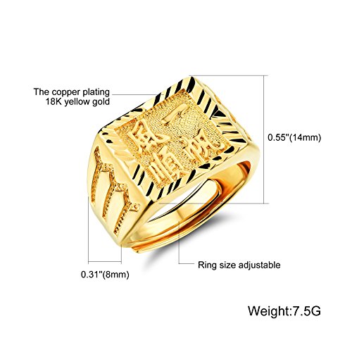 OPK, anello placcato in oro 18 carati con incisione in caratteri cinesi dal significato "buona fortuna", taglia regolabile