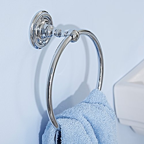 Anello porta asciugamani da appendere a parete, elegante, finiture in metallo cromato e ceramica, colore: bianco, metallo, Argento, Edwardian