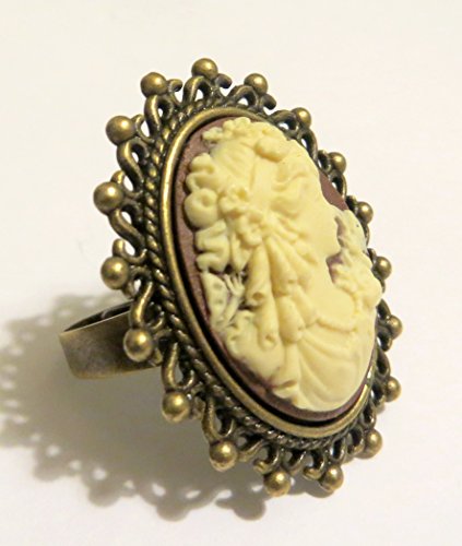 Anello Regolabile Colore Bronzo con cammeo 25x18mm Dama Farfalla Gothic Victorian Butterfly Lady Cameo Ring Larp