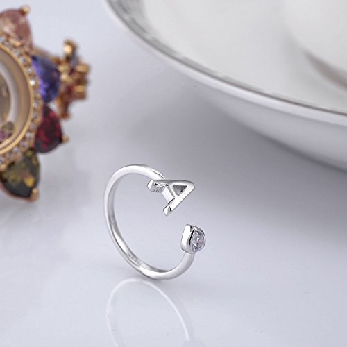 Anello Regolabile Lettera Iniziale in Argento Sterling 925 con zirconi Regali Personalizzati per Donna o Ragazza,Regali San Valentino, Misura Anello J. Toe Anelli per Estate Anelli Donna Viki Lynn