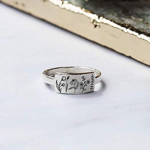 Anello per lui ROMANTICWORK Wildflower in argento Sterling 925, anello di fidanzamento, anello dichiarante, anello di compleanno, ragazze e ragazzi e Argento, colore: a