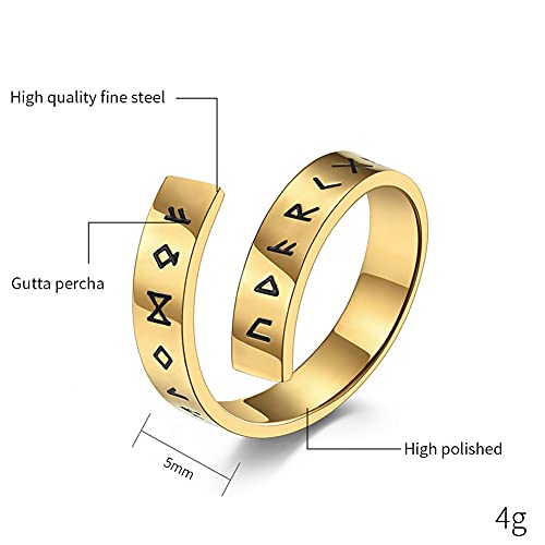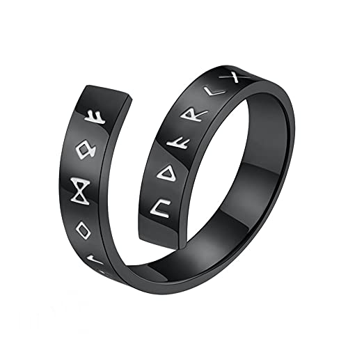 Anello Runico Nordico Vichingo Anello Aperto Regolabile, Anello Uomo Donna Elder Futhark Rune, Anello A Fascia in Acciaio Inossidabile Amuleto Pagano Gioielli Norvegesi Vintage Taglia 7-12