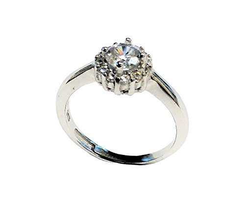 Anello solitario regolabile in argento 925 con zirconi bianchi