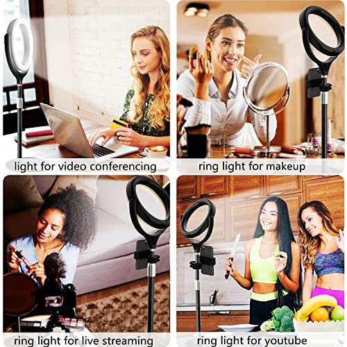 Luce ad anello con supporto e supporto per telefono per laptop Illuminazione per videoconferenze Zoom Luce per riunioni per scrivania Desktop Luce ad anello LED per trucco Videochiamate Registrazione video Live Stream YouTube Tiktok