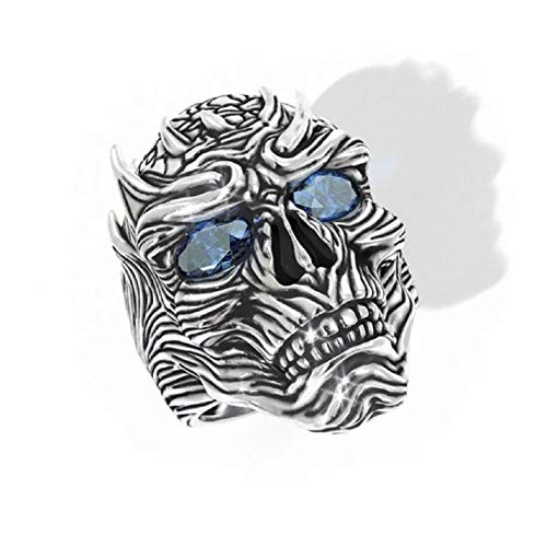 Anello teschio demone per uomo, anello del diavolo cool Halloween Biker, anello teschio occhio blu gotico, anello festa cocktail teschio alieno, regalo gioielli vintage punk per uomo ragazzi (20)