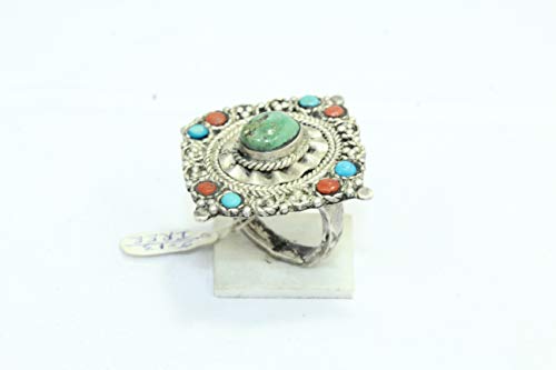 PH - Anello tibetano in argento Sterling 925 con corallo turchese inciso a mano
