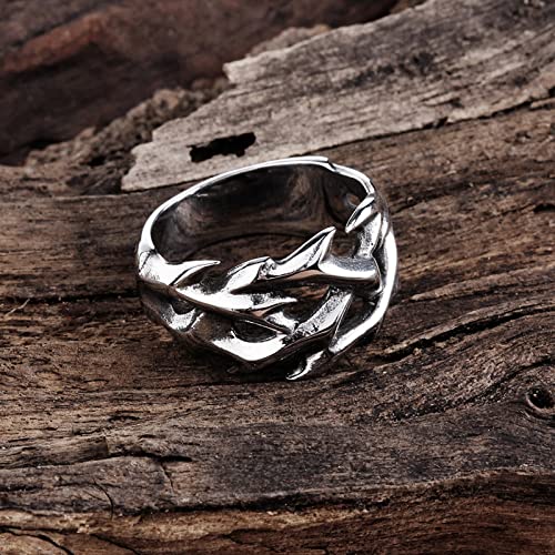 HCMA Anello da Uomo Vintage con Spine in Acciaio Inossidabile con Design Scavato, Anelli da Coppia per Uomo, Donna, Regalo di Gioielli Vichinghi nordici