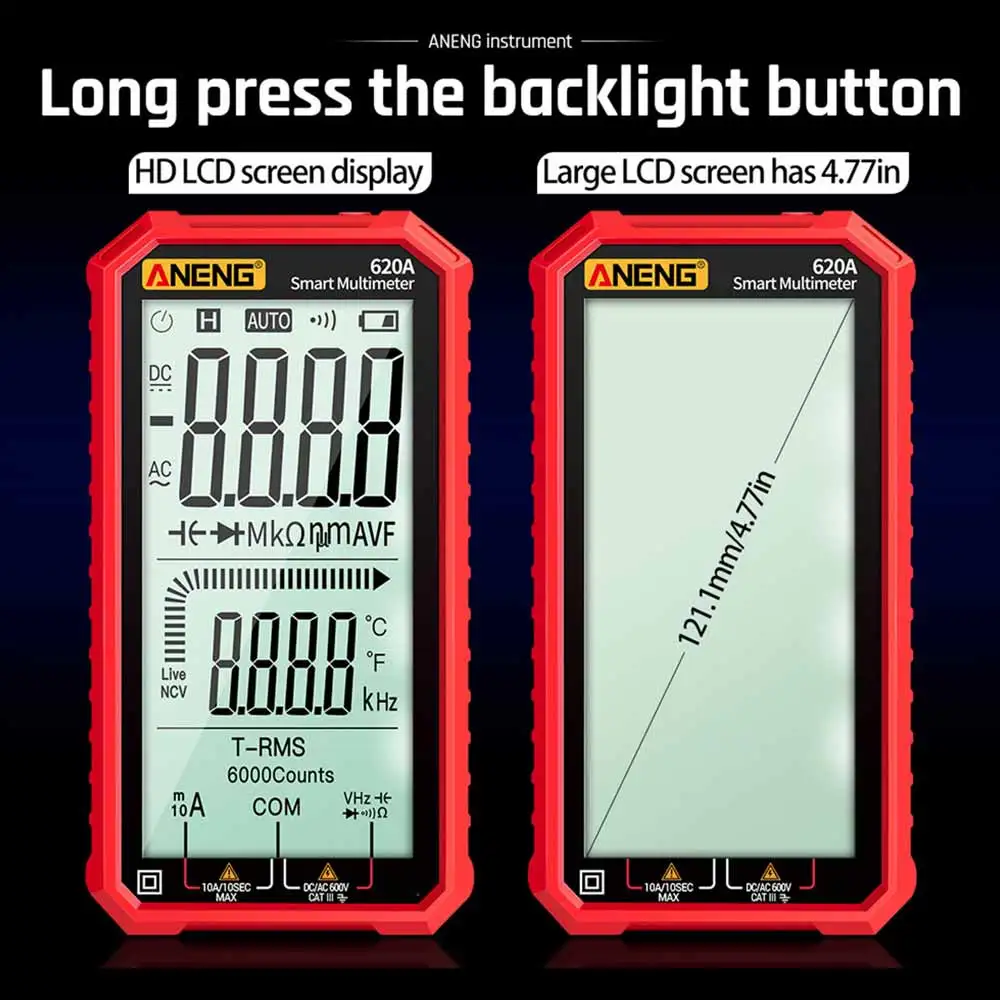 ANENG620A 4.7 Inch Auto Ranging Multi Tester Frequency Capacitance Temperature Tests Digital Multimeter Large LCD Display Screen