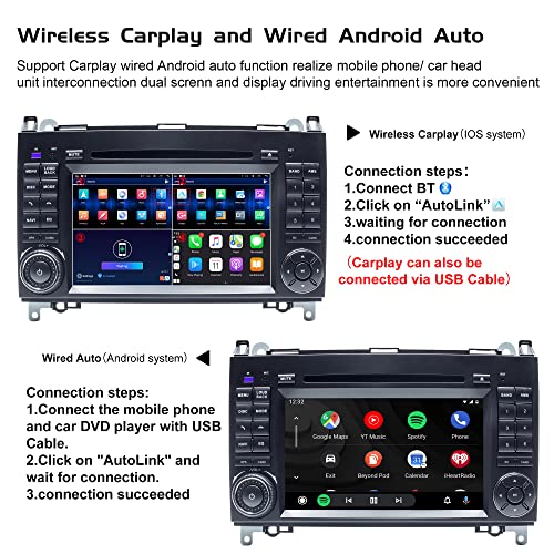 AneQu Android 12 Autoradio per Mercedes Benz Sprinter B200 Viano Vito W639 W169 W245 Octa Core 8 GB RAM 128GB ROM Auto GPS Navigatore Telecamera di retromarcia Built-in Carplay Android Auto(7 pollici)