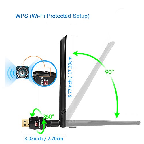 ANEWKODI USB WiFi Adattatore 5dBi Antenna 600Mbit/s Dual Bande (2.4G+5G) Mini WIFI Dongle Wireless LAN 802.11n/g/b/a/ac per PC Windows 10/8.1/8/7/XP/Vista (32/64bits) MAC OS