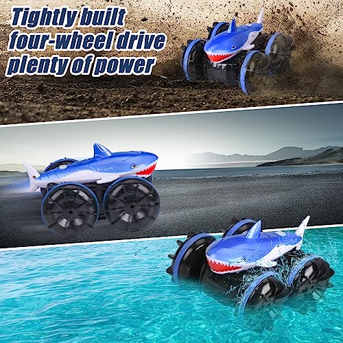 Presenta un design unico dello squalo e dispone di rotazione sinistra e destra di 360° e acrobazie di rotazione anteriore e posteriore di 180°, che consente di superare facilmente gli ostacoli e migliora notevolmente il divertimento del telecomando per i bambini.
