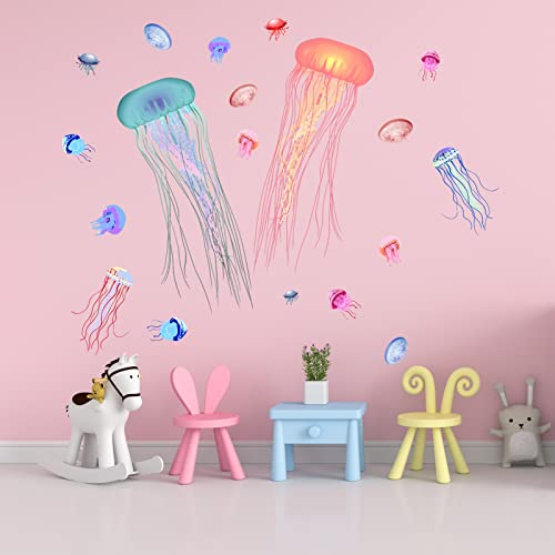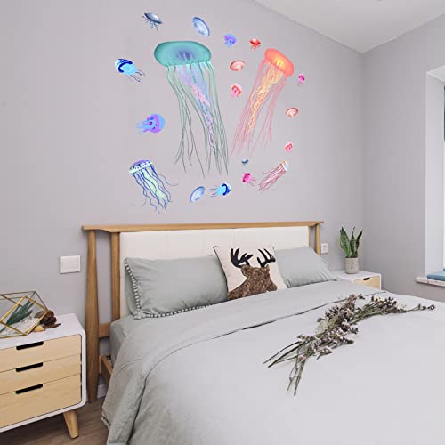 AnFigure Grandi Meduse Adesivi da Parete per Ragazze Camere Pesci di Mare Animale Oceano Adesivi da Parete Sott'Acqua Bambini Asilo Nido Stanza dei Giochi da Parete per Pesci di Mare Decorazione