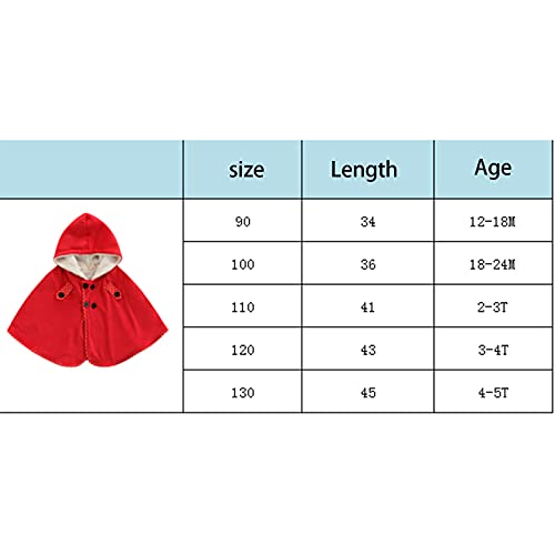 ANFUTON Mantello con cappuccio rosso per bambini e bambine, spesso e morbido e caldo mantello con bottoni, 1-5 anni, Rosso, 18 mesi
