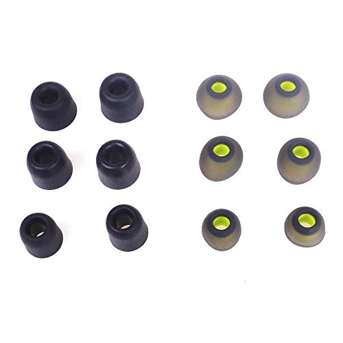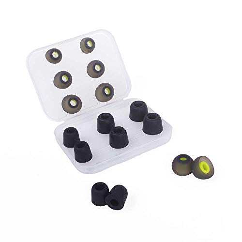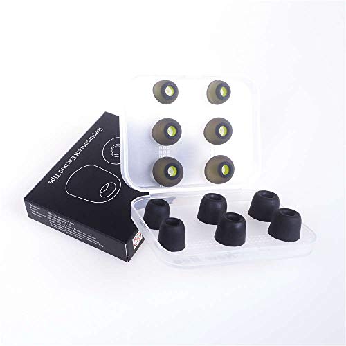In ear headphones Replacement Tips, including small, medium, large 3 pairs of silicone tips and small, medium, large 3 pairs of memory foam tips, also fitted with a small storage box.