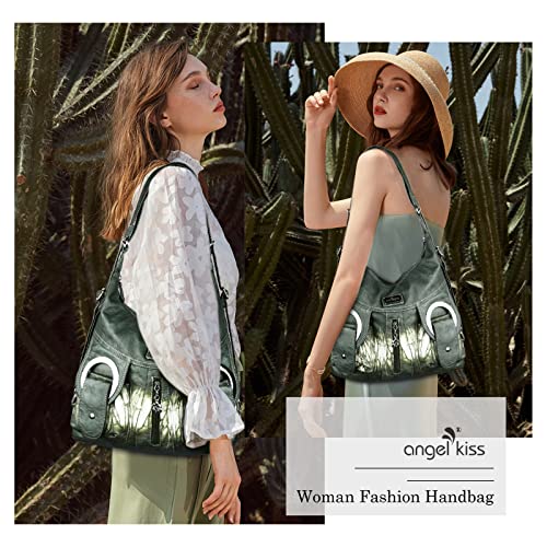 Angel kiss Borsa Donna Borsa a Mano Borse a Spalla Pelle PU Grande Borse Donna Tracolla Borse a Mano Moda cerniera Borsa Hobo Tote Vintage per lavorare, fare shopping, viaggiare - Verde