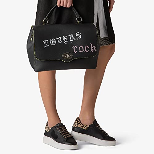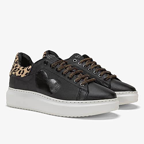 Angel Cuore Silver Pardus - Sneakers in Pelle spalmata - Dipinto a Mano Glossy - 36 - Nero