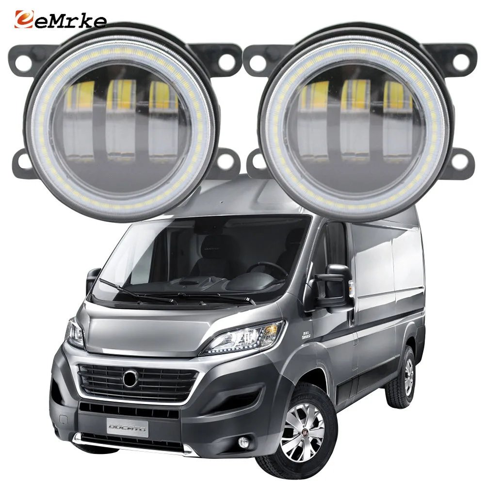 2PCS Led Angel Eye DRL for Fiat Ducato 250/290 2014 2015-2019 2020 LED Fog Lights Lamp 2-Colors Lens Daytime Running Light 12V
