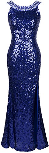 Angel-fashions Da Donna Girocollo Perline Lustrino Senza Schienale Fessura Vestito da Festa Small Blu